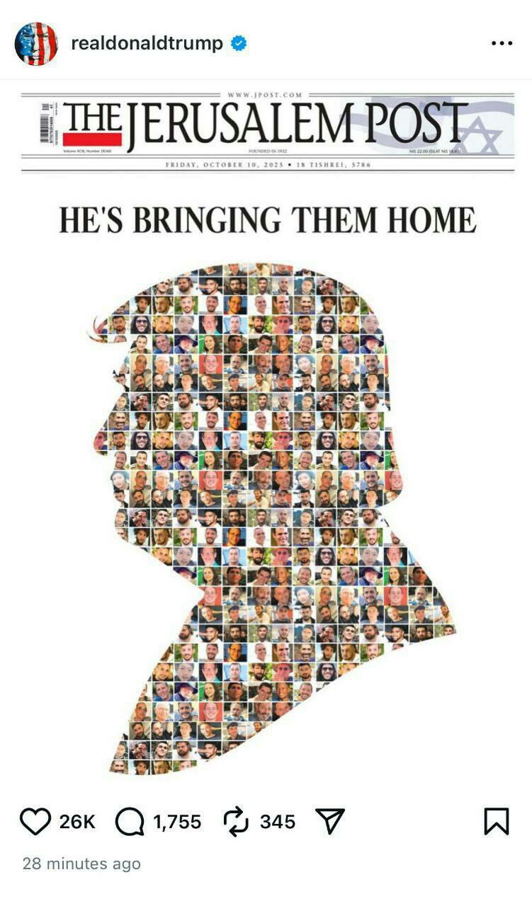 قالت اذاعة جيش الاحتلال أنه: قبل ساعات من إعلان الفائز بجائزة نوبل؛ قام الرئيس الأمريكي دونالد ترامب ينشر تغريدة بصور الأسرى مكتوب عليها " هو من يستطيع إعادتهم إلى الوطن "