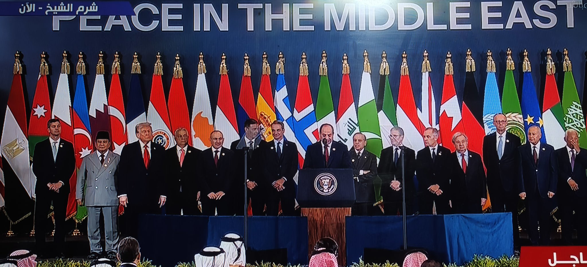 على هامش قمة شرم الشيخ للسلام، عقد اليوم اجتماع بين زعماء الدول المشاركة في مؤتمر السلام في شرم ،ضم ملك الأردن، ورئيسي فرنسا، وتركيا، وأمير دولة قطر، والمستشار الألماني، ورؤساء وزراء إيطاليا، والمملكة المتحدة، وكندا، ووزير خارجية المملكة العربية