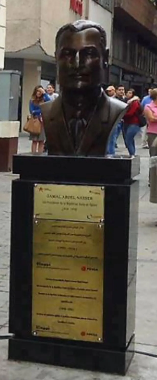 الرئيس المصري جمال عبدالناصر نضب له تمثال في أشهر شوارع العاصمة الفنزويلية كاراكاس.