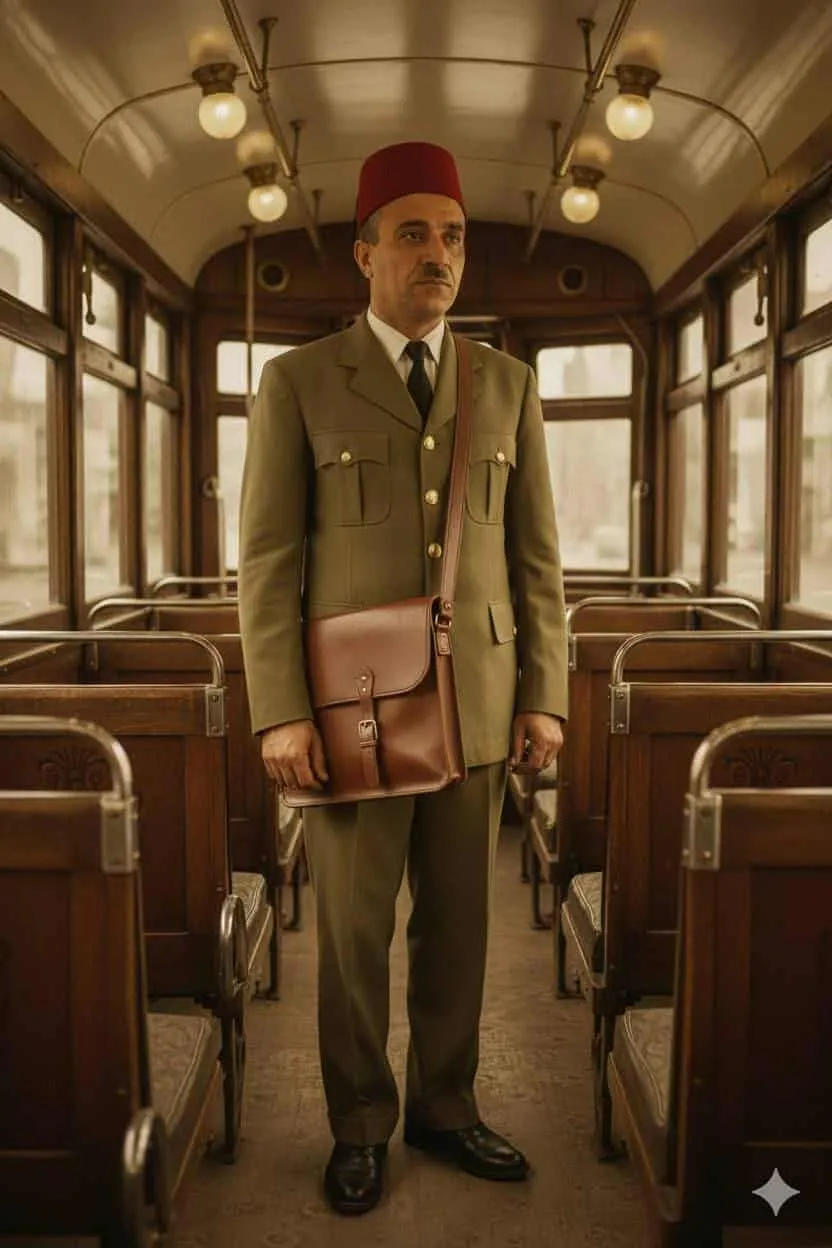 اسمه ليس مهمًا بقدر صفارته النحاسية حين يرفعها إلى فمه لتعلن بداية سطرٍ جديد من يومٍ طويل. كمساري الترام، يعرف أن المدينة لا تُرَى إلا من داخل عربات الترام، حيث تتجاور الحكايات بلا موعدٍ.