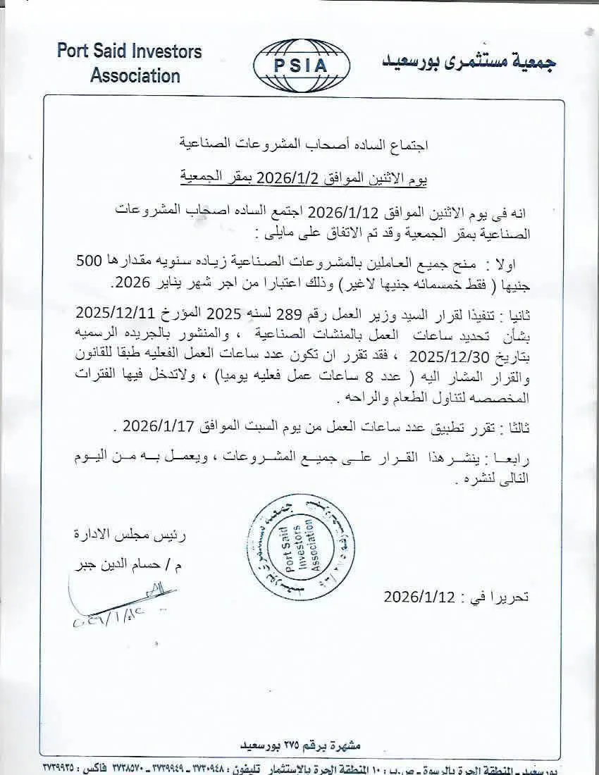 تدين المفوضية المصرية القرار الصادر عن جمعية مستثمري بورسعيد، والمستند إلى قرار وزاري بشأن تنظيم ساعات العمل بالمنشآت الصناعية، والذي تقرر بموجبه زيادة ساعة عمل يومية للعاملين بالمنطقة الحرة ببورسعيد مقابل زيادة مالية مقطوعة قدرها 500 جنيه شهريًا، وتعتبره قرارًا ينطوي على انتهاك جسيم للحق في شروط عمل عادلة ومنصفة، ومساس مباشر بحقوق مكتسبة استقرت للعاملين، وانتقاص فعلي من الأجر، بالمخالفة لأحكام قانون العمل المصري وللمعايير الدولية الملزمة في مجال حقوق العمل.
