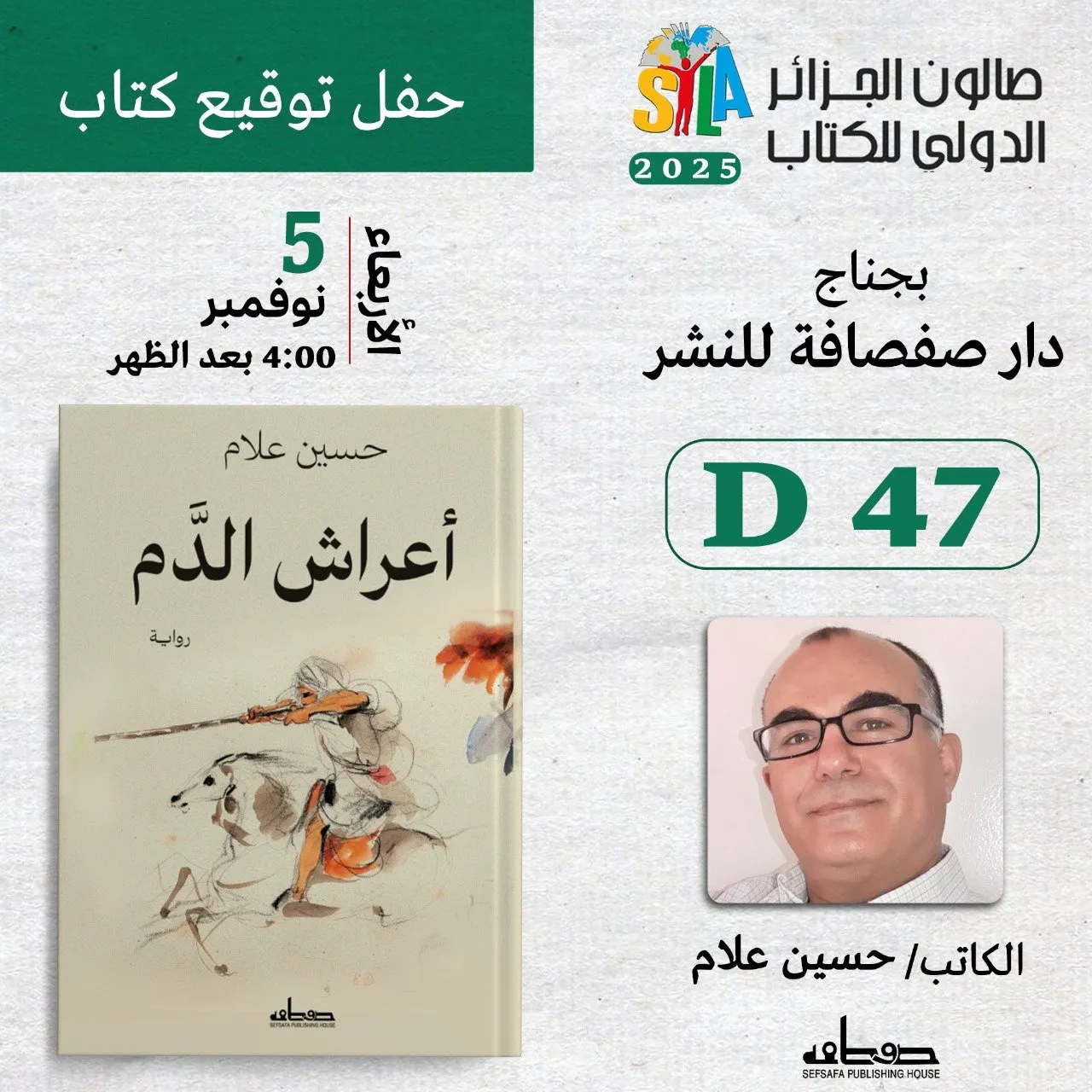 في قلب الجزائر، حيث تتشابك أساطير القبيلة مع واقع الجفاف وسكون الصحراء الممتدة بلا نهاية، يولد فتى يحمل لعنة الغربة منذ ولادته، ابن مناضل غامض ارتبط اسمه بصدى حروب الماضي وأسرار لم تكتشف بعد. هذه هي نقطة الانطلاق في رواية الدكتور حسين علام بعنوان "أعراش الدم"، الصادرة عن دار صفصافة في القاهرة، التي تمثل نصًا معقدًا يجمع بين الرواية التاريخية والفانتازيا الوجودية، ويضع البحث عن الذات في قلب سرد متشابك بين التاريخ والجغرافيا والأسطورة.