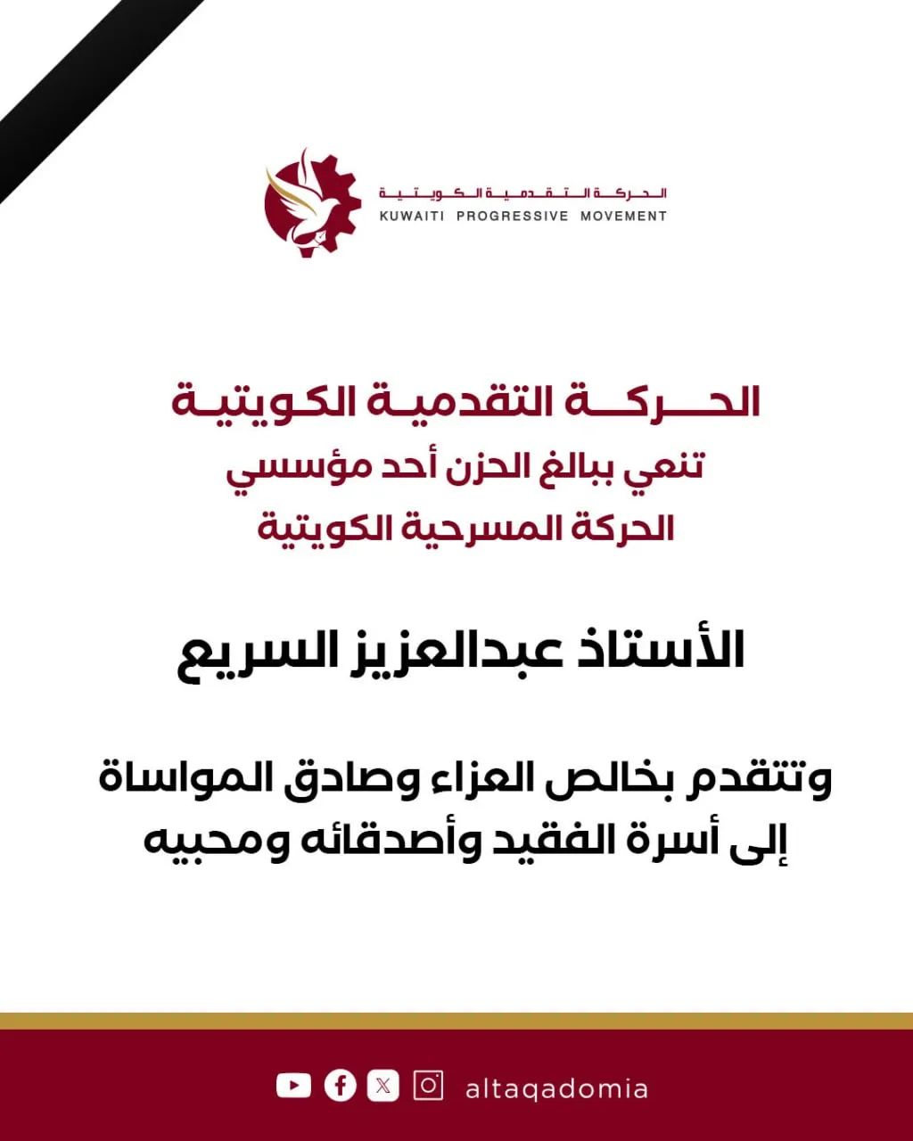 ونعت الحركة التقدمية الكويتية تنعي ببالغ الحزن