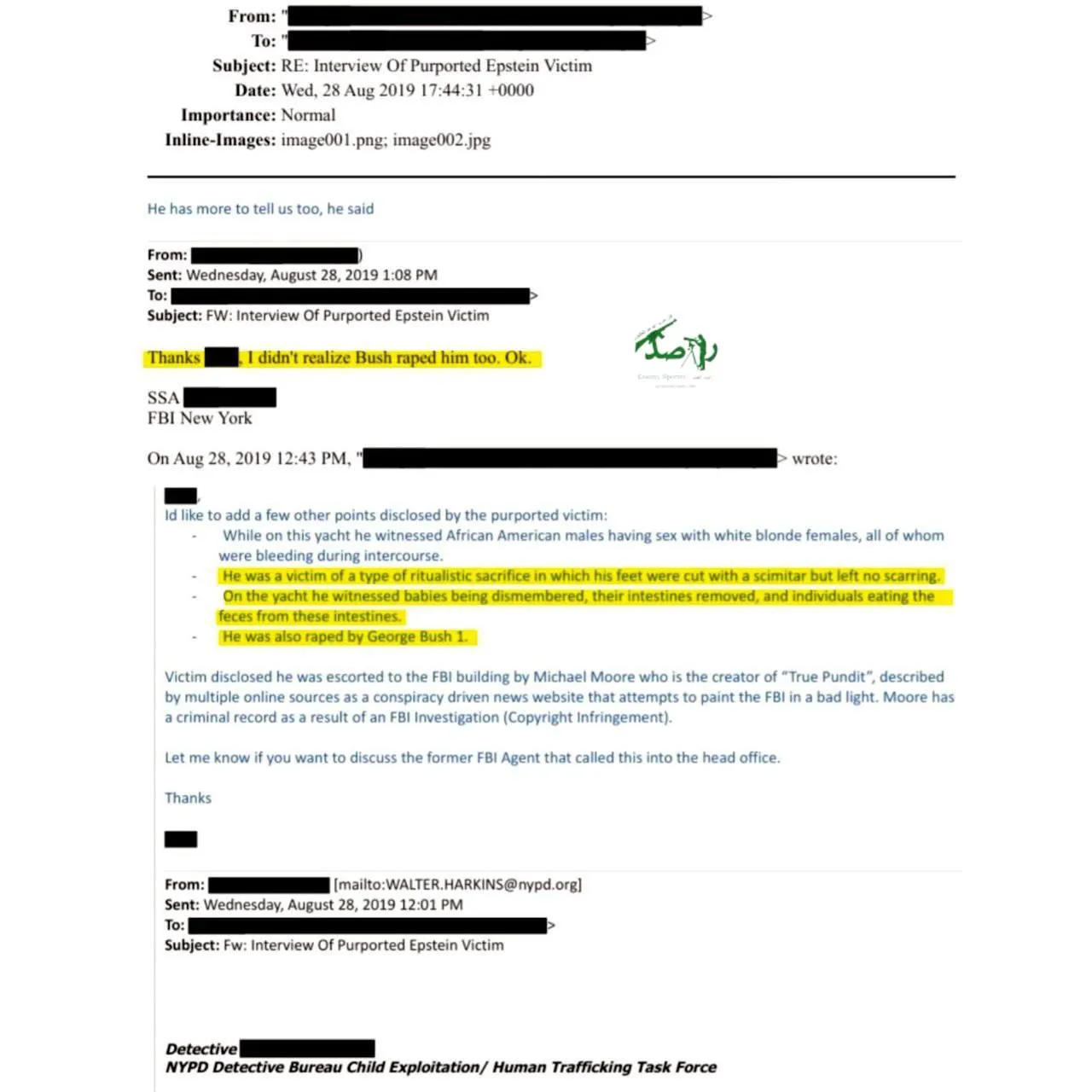 "جورج بوش الأول" (الأب) اغتصب ضحية ذكر (طفل) وشهد نوعًا من التضحية الطقوسية عبر قطع قدماه بالسيف