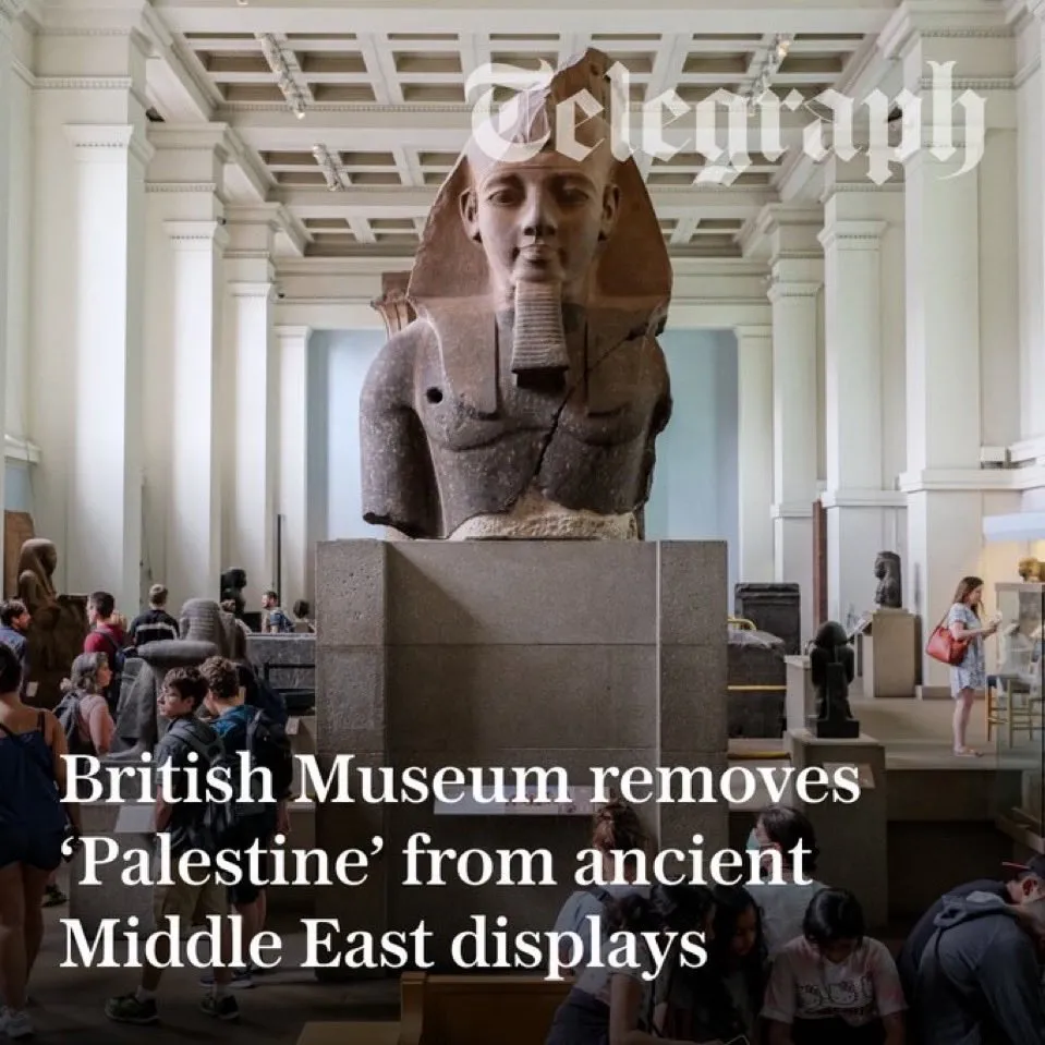 أثار قرار المتحف البريطاني بحذف كلمة "فلسطين" من معروضاته المتعلقة بالشرق الأوسط القديم موجة من الاستنكار، بعد ضغوط من جماعة دعوية إسرائيلية مقرها بريطانيا.