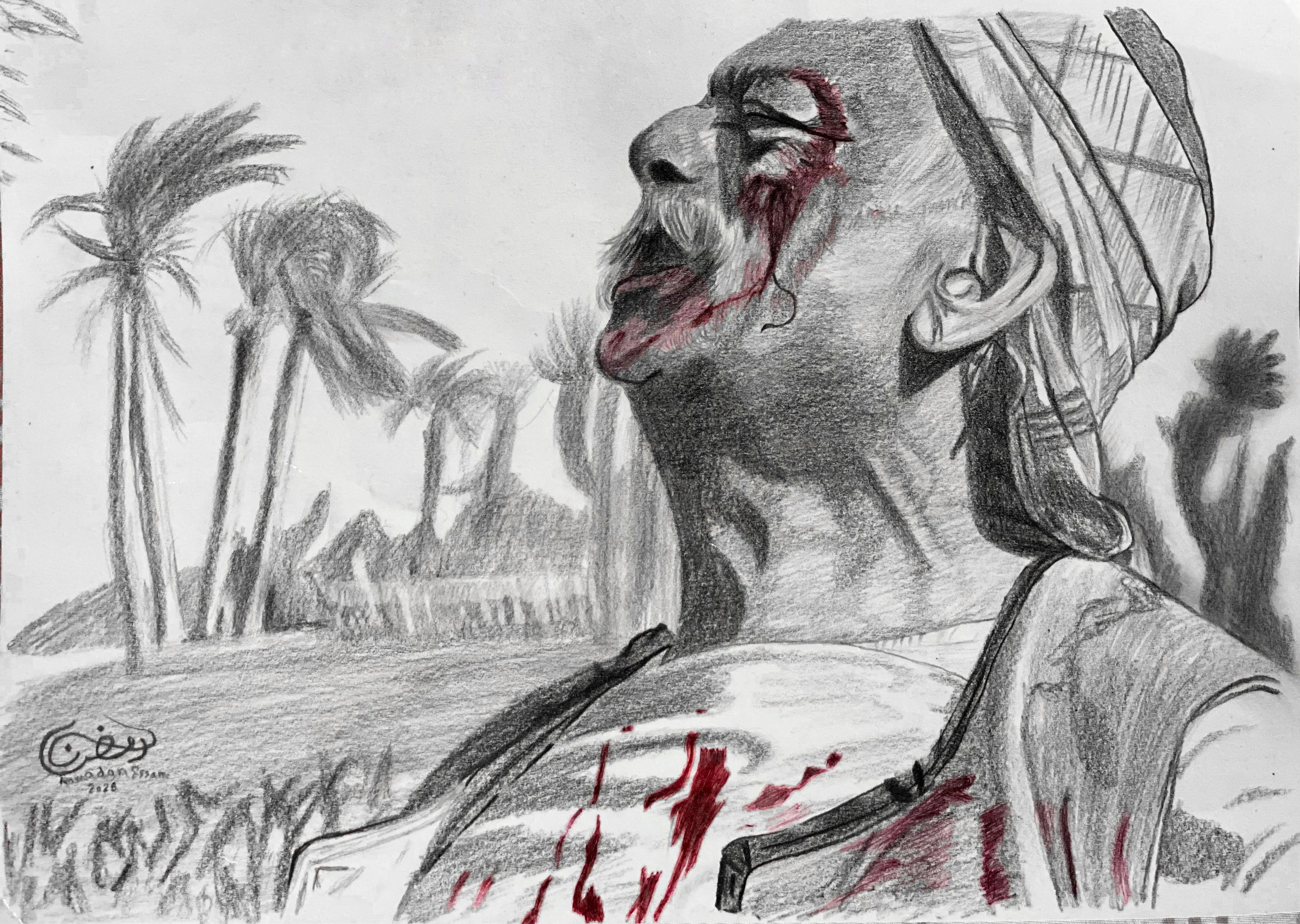 رمضان عصام 23 سنة فنان تشكيلي شاب من طنطا