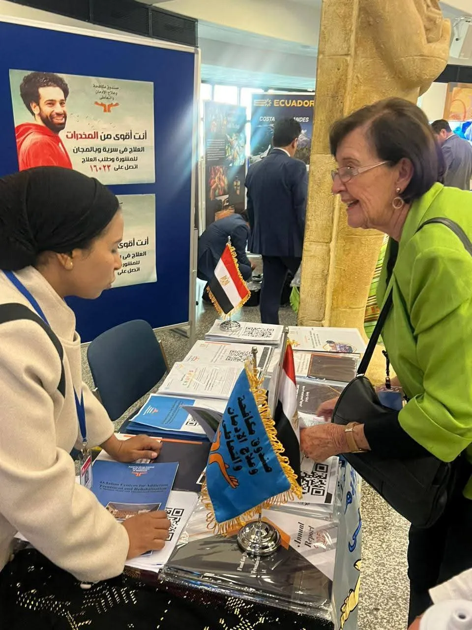 ويتواجد معرض صندوق مكافحة وعلاج الإدمان والتعاطي داخل مقر منظمة الأمم المتحدة في فيينا ،ومن خلال المعرض يتم عرض آليات محاور عمل مراكز العزيمة التابعة للصندوق ،حيث توفر خدمات العلاج والتأهيل لمرضى الإدمان مجاناً ووفقا للمعايير الدولية فضلا عن برامج التمكين الاقتصادى للمتعافين من خلال تدريبهم على حرف مهنية يحتاجها سوق العمل ضمن خدمات ما بعد العلاج المجانى ،حتى أصبحت تجربة انشاء مراكز العزيمة من التجارب الرائدة على المستوى الاقليمى .