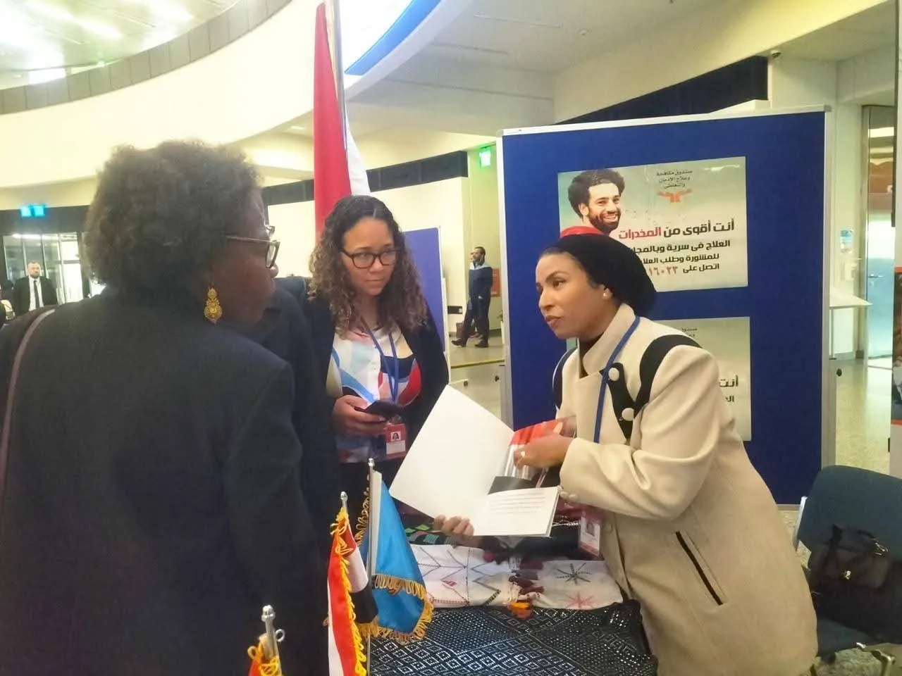 شهد معرض صندوق مكافحة وعلاج الإدمان والتعاطي بمقر منظمة الأمم المتحدة بفيينا، توافد عدد كبير من جانب وفود وممثلو الدول المشاركة فى اجتماعات الدورة الـ 69 للجنة الدولية للرقابة على المخدرات المنعقدة حاليا بدولة النمسا .