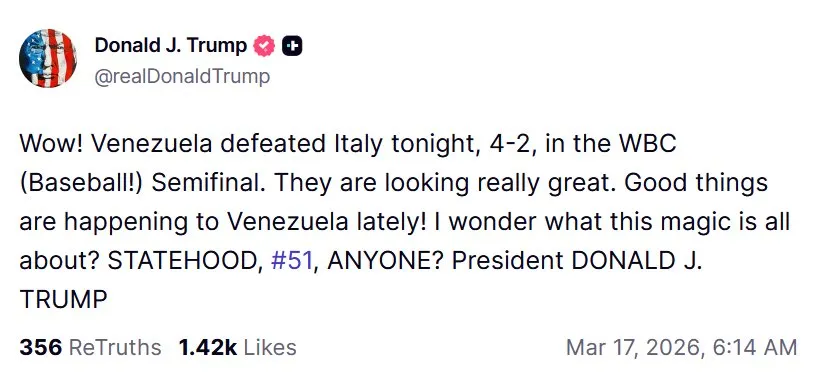 فنزويلا تكتسب إيطاليا 4/2 في نصف نهائي بطولة العالم للبيسبول وترامب يدرس جعلها الولاية 51