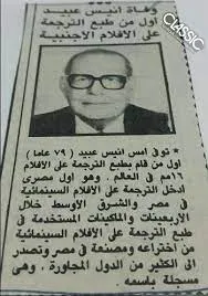 المهندس أنيس عبيد: أول من طبع الترجمة على شريط الفيلم
