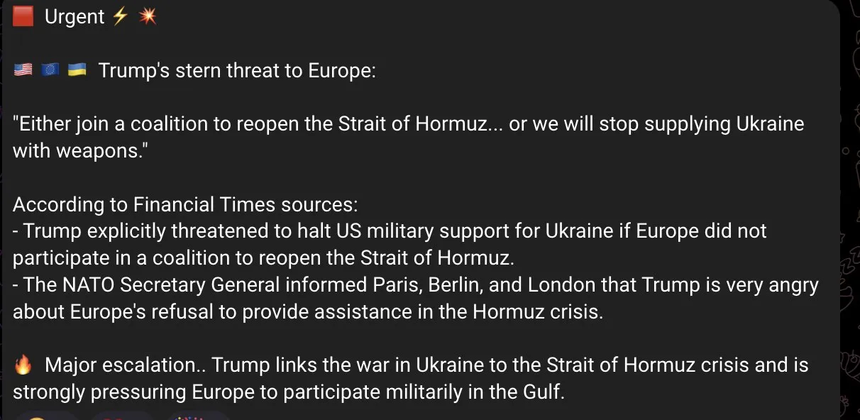بهذه الخطوة، يربط ترامب بشكل مباشر بين الصراع في أوكرانيا والأزمة في الخليج، مما يضع أوروبا أمام خيار صعب: المشاركة العسكرية في الخليج أو فقدان الدعم الأمريكي المهم لأوكرانيا. هذا التصعيد يعكس استراتيجية ترامب "أمريكا أولاً"، التي قد تعيد تشكيل التحالفات الدولية في المستقبل.