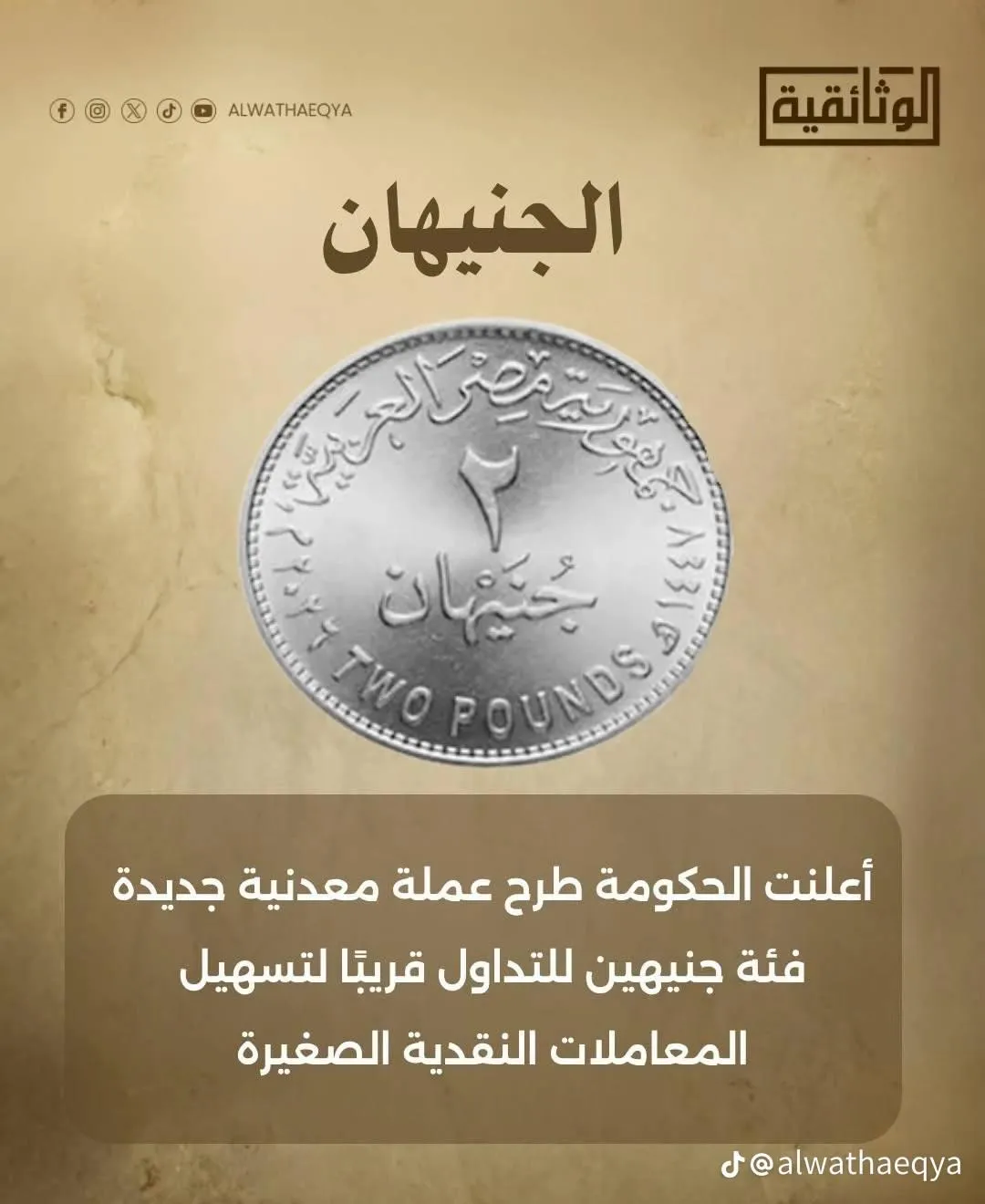 من(السحتوت) الى( الجنيه ) والجنيهان والمرتقب اصداره قريباً فى السوق المصرية.