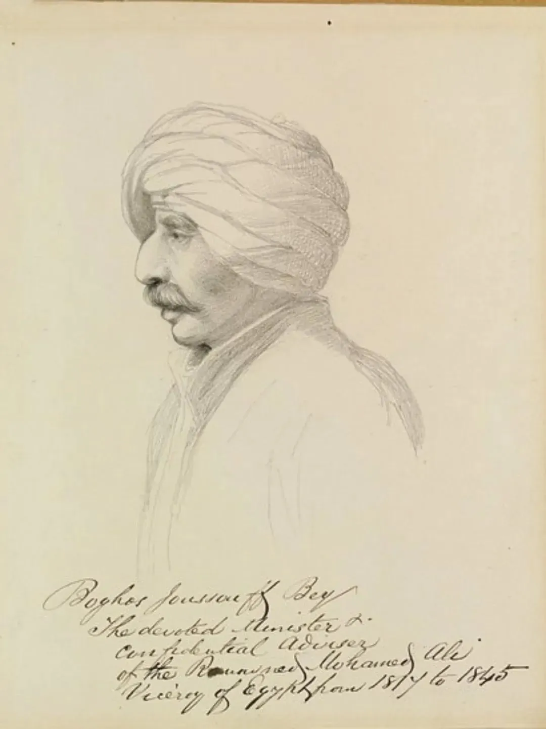 يبرز في قلب هذا الإرث التاريخي شخصية بوغوص بك يوسفيان (1775-1844)، الأرمني الذي تمصر تمامًا وأصبح رمزًا للولاء والكفاءة، فقد عُيّن أول "ناظر ديوان التجارة" ثم "مدير ديوان التجارة المصرية والأمور الإفرنجية"، مما يجعله أول وزير خارجية مصري حقًا.