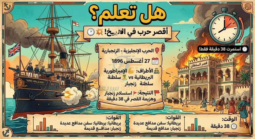 في واحدة من أكثر الوقائع غرابة في التاريخ الحديث، اندلعت في سلطنة زنجبار حرب وُصفت بأنها الأقصر على الإطلاق، إذ لم تستغرق سوى 38 دقيقة تقريبًا، لتتحول إلى مثال فريد على اختلال ميزان القوة بين إمبراطورية كبرى وسلطنة صغيرة في شرق أفريقيا.