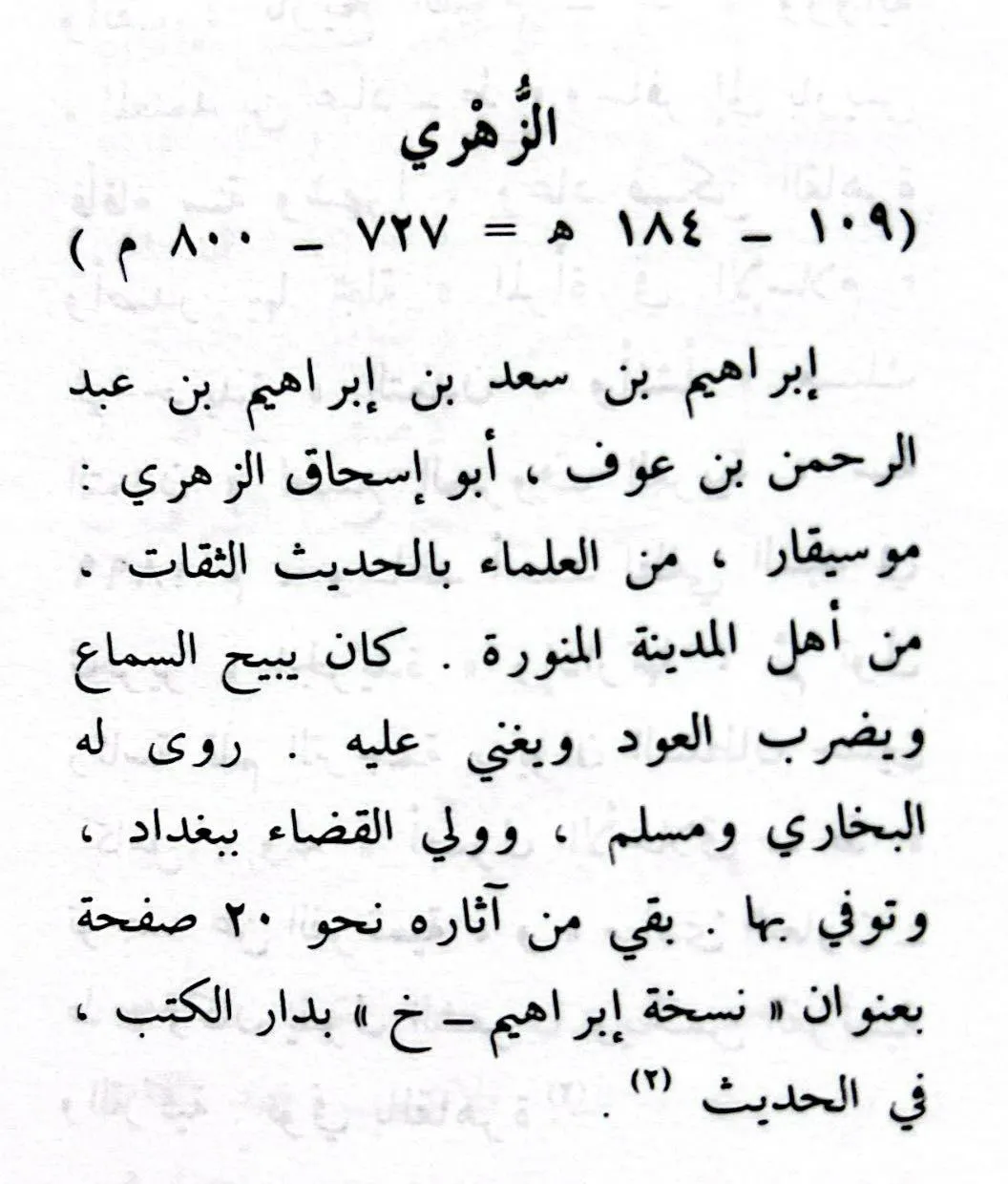 من ترجمة الزركلي لأحد فقهاء المدينة في القرن الثاني وكان فقيهاً موسيقاراً كما استهر عن أهل المدينة في ذلك الزمان من إباحة الموسيقى.