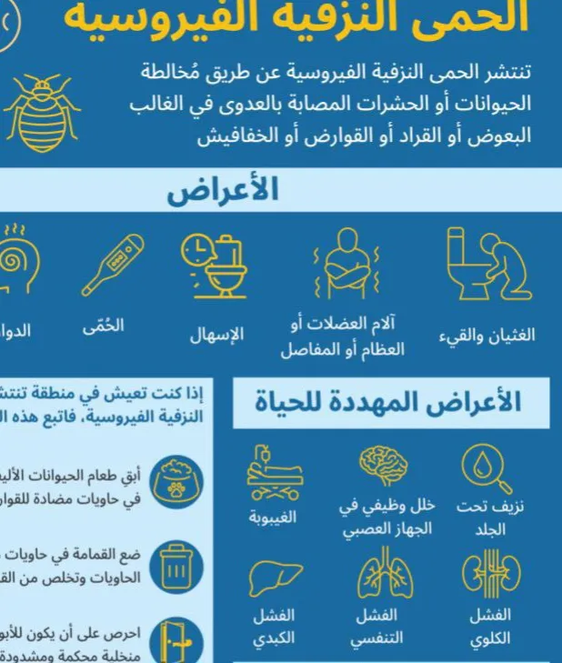 لا تنتظر ظهور كل الأعراض! قد تبدأ الإصابة بحرارة فقط، دون نزيف . إذا كنت في منطقة موبوءة أو تعاملت مع مواشٍ مؤخراً، راجع الطبيب فوراً فقد تكون الحمى النزفية في بدايتها..