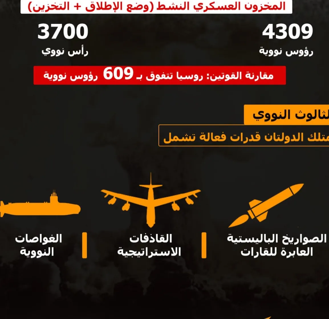 مقارنة القوة النووية الروسية والأمريكية في 2025